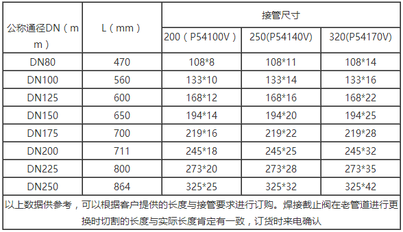 J61Y(J961Y)高壓電站截止閥尺寸表: