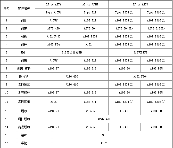※注意:客戶需求的其他材質(zhì)也可采用。密封面材料配對(duì)由客戶指定內(nèi)件代號(hào)決定。