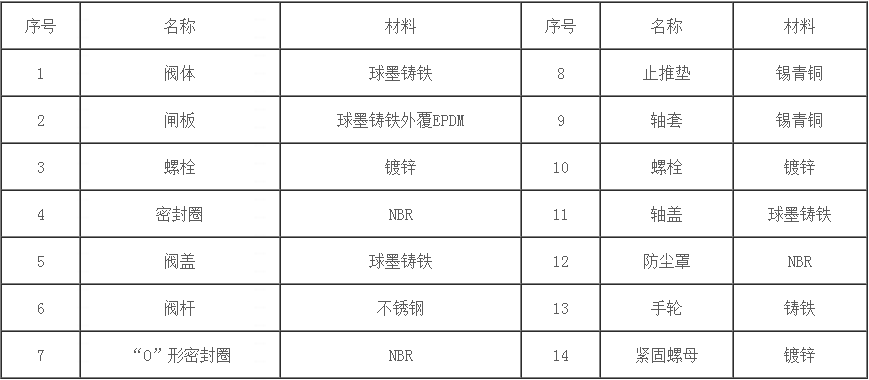 埋地式彈性座封閘閥主要零件材料: