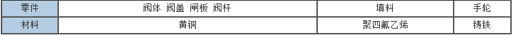 內(nèi)螺紋黃銅閘閥主要零件材料: