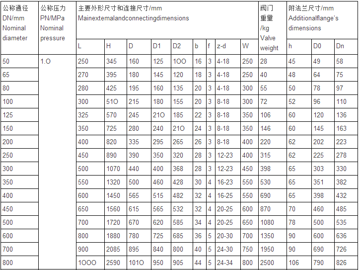 真空隔離閘閥主要尺寸及重量