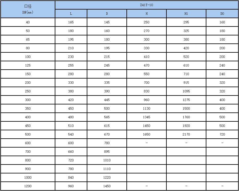 暗桿楔式閘閥主要外形尺寸