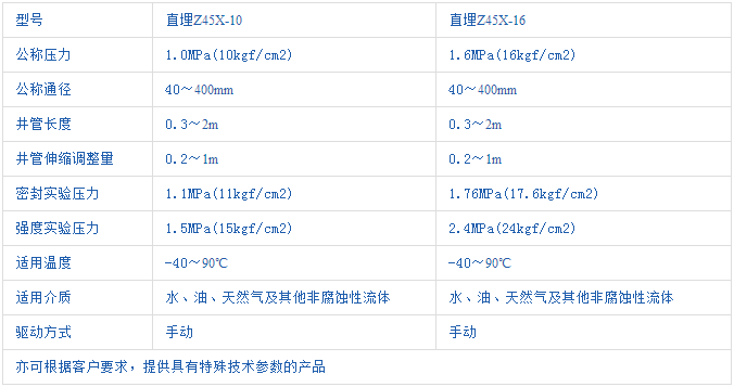 平底式閥座 ——傳統(tǒng)的閘閥往往在通水洗管后即因外物諸如石頭、木塊、水泥、紙屑、雜物等淤積于閥底凹槽內(nèi),容易造成無法關(guān)閉緊密而形成漏水現(xiàn)象,軟密封閘閥底部采用與水管相同的平底設(shè)計,不易造成雜物淤積,使流體通暢無阻。整體包膠—— 閥門采用的橡膠進行整體內(nèi)、外包膠,國內(nèi) 的橡膠硫化技術(shù)使得硫化后的閥門能夠保證 的幾何尺寸,且橡膠與球墨鑄鐵閥門接著牢靠,不易脫落及彈性記憶佳。耐腐蝕—— 閥體采用粉體環(huán)氧樹脂涂裝,可防止閥體的腐蝕及生銹,并可用于污水系統(tǒng)。不易碎裂 以往傳統(tǒng)鑄鐵閘閥常因外物擊中、碰撞或重疊而造成斷裂等現(xiàn)象。由于本體改用球墨鑄鐵,此種情形已可大副度減少。三“O”型環(huán)密封圈—— 由于閥桿采用三“O”型環(huán)密封圈密封設(shè)計 ,可減少開關(guān)時的摩擦阻力,大幅減少漏水現(xiàn)象及可以不停水施工更換密封圈。有助生飲—— 由于閥體內(nèi)部以無毒性環(huán)氧樹脂涂裝,閘板的內(nèi)外表面均以橡膠完全包覆而不Z于出現(xiàn)銹水或腐蝕現(xiàn)象,可供生飲。精鑄閥體 ——閥體采用精密鑄造, 的幾何尺寸使得閥體內(nèi)部無需任何精加工即可保證閥門的密封性。重量輕 ——本體采用球墨鑄造制成,重量較傳統(tǒng)閘閥重量減輕約20%~30%,安裝維修方便。 MZ45X-10、MZ45X-16Q直埋式彈性座封閘閥技術(shù)參數(shù):