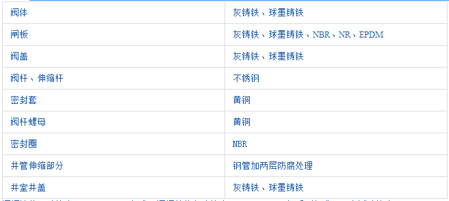 MZ45X-10、MZ45X-16Q直埋式彈性座封閘閥閥門材料表: