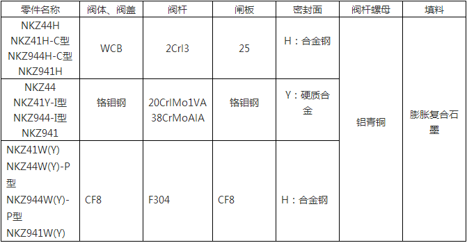 NKZ41H (NKZ44H)真空法蘭閘閥主要零件材料