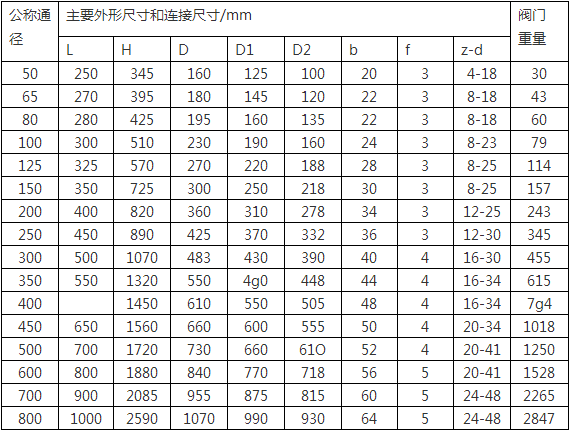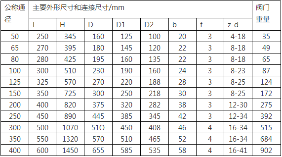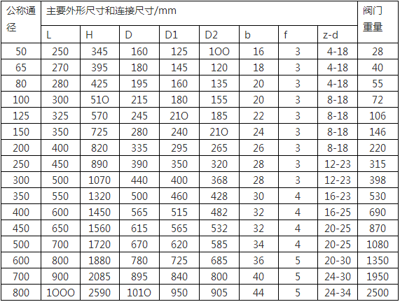 NKZ41H (NKZ44H) 1.0Mpa主要尺寸及重量