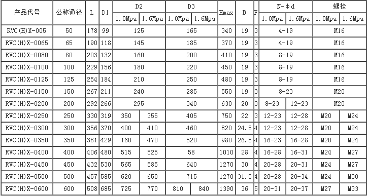 DN50-200mm法蘭外徑(D3)依PN10/16標(biāo)準(zhǔn)制造,DN250-500mm則符合PN16標(biāo)準(zhǔn)。