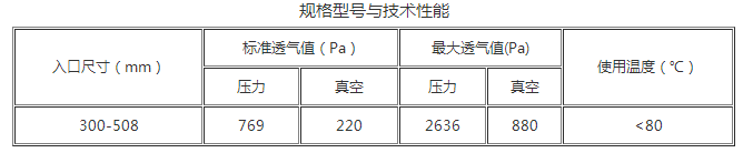 標(biāo)準(zhǔn)透氣值 真空 7.69×10-3 Kgf/cm2 壓力 2.2×10-3